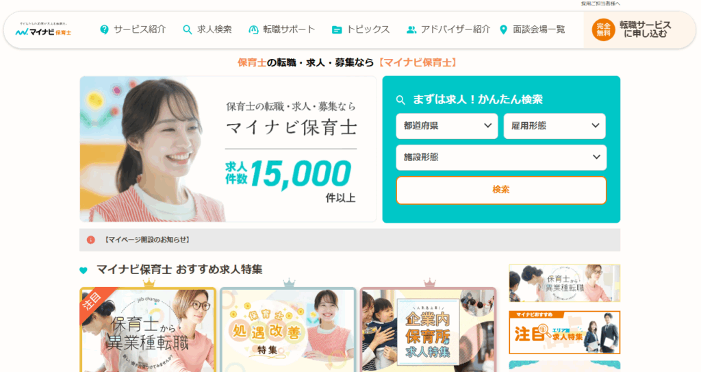 国内最大級の登録者数を誇る保育士転職サイト。