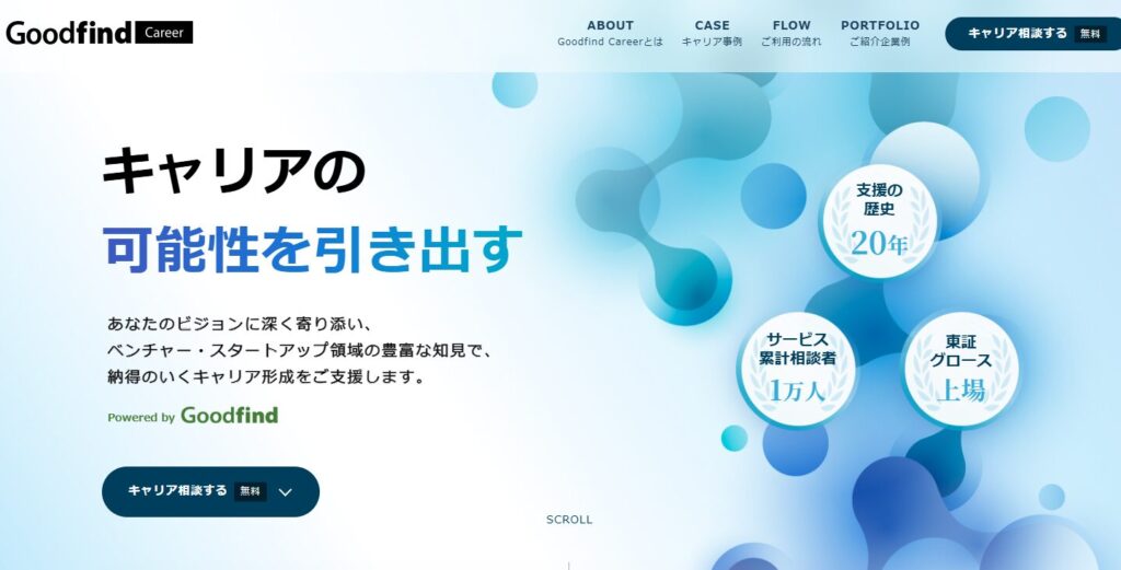 Goodfind Careerは、将来の事業責任者や経営幹部候補となる若手層に特化した転職エージェントです。