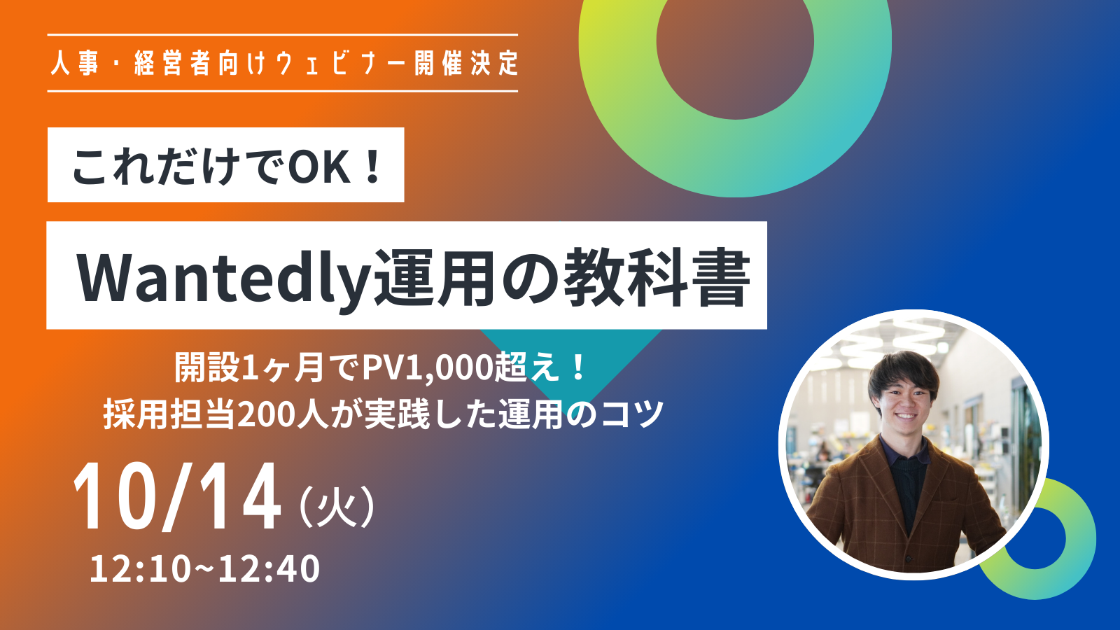 本セミナーでは、開設わずか1ヶ月で1,000PVを超え、実際に200名以上の採用担当者が実践してきたWantedly運用の「教科書」となるべきノウハウを、体系立てて解説します
